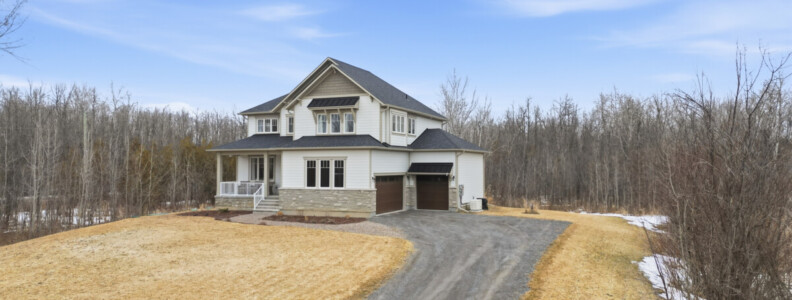 Nestled on 1.8 acres in the highly sought-after estate subdivision of Moodie Estates, this stunning Mackie-built bungalow offers the perfect blend of serene country living and convenient access to Carleton Place and Ottawa. From the moment you arrive, the meticulous attention to detail inside and out will impress. Surrounded by mature trees, the property features a fully paved driveway with bonus side parking, a beautifully interlocked patio, and a cozy fire pit ideal for outdoor enjoyment and entertaining. Step up the hard scaped staircase and into a home that’s packed with upgrades. The open-concept layout seamlessly connects the kitchen, living, and dining areas, complete with gleaming hardwood floors and a welcoming gas fireplace. The custom kitchen is a chefs dream, showcasing floor-to-ceiling cabinetry, ample counter space, and a large island perfect for family cooking and gatherings. The spacious primary suite offers a private retreat with a luxurious ensuite and walk-in closet. Two additional main-floor bedrooms, main floor laundry, and high-end finishes throughout add to the comfort and convenience of this exceptional home. Downstairs, a finished rec room provides additional living space, with plenty of room left to customize to your needs whether that’s a home gym, office, or media room. And don’t overlook the oversized three-car insulated garage, ideal for vehicles, storage, or a workshop. Experience the charm, space, and quality craftsmanship of this beautiful country home. Welcome home.