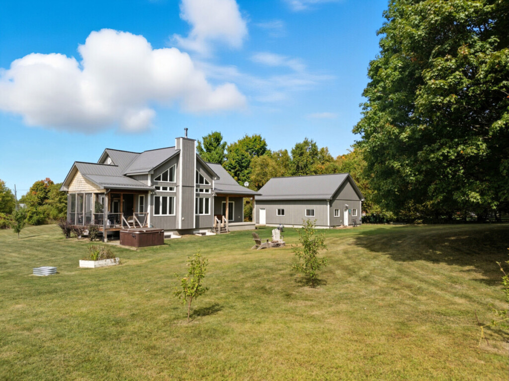 Nestled on 2.5 acres land and surrounded by mature trees, this 2019-built bungalow offers the perfect blend of comfort, charm, and nature. From the moment you arrive, you’ll be captivated by the peaceful setting and thoughtful features that make this property truly special. Step outside into a country lovers dream treed acreage complete with tapped maple trees, scenic trails to explore, and a detached shop featuring in-floor heating, hot water tank, and hydro. Whether you’re a hobbyist, outdoors enthusiast, or simply crave space to roam, this property delivers. Inside, you’ll instantly fall in love. Soaring cathedral ceilings and a stunning wood-burning fireplace create a warm, inviting atmosphere, while the open-concept kitchen is truly a chefs dream ideal for hosting, cooking, and everyday living. Step through the double sliding doors and into your beautiful screened-in room, the perfect place to unwind and enjoy warm summer nights bug-free. The spacious lower level feels anything but “lower” large windows flood the space with natural light, and you’ll find three additional bedrooms, a full bathroom, and ample space for the whole family to spread out and enjoy. This is more than just a house it’s a lifestyle. A place to breathe, explore, and feel truly at home.